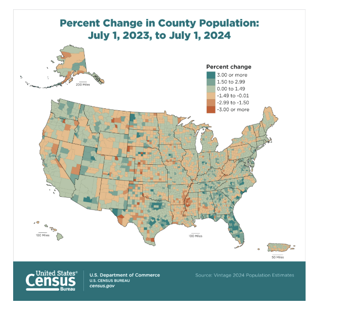 At the same time, the broader geographic trend remains clear. The South and West continue to dominate population gains.